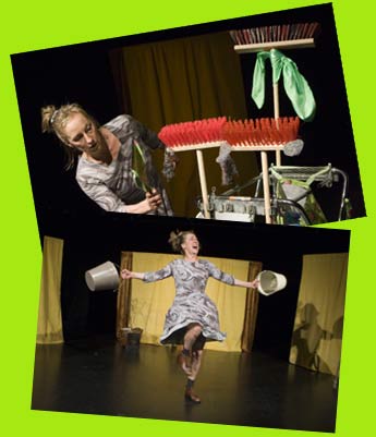 im Schloß ein phantasievolles Besentheater. Der Putzwagen